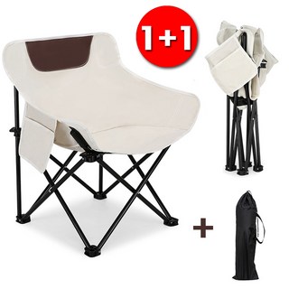 1+1접이식 캠핑의자 휴대용 옥스포드 낚시의자 초경량 릴렉스체어 세트, 2개, 베이지