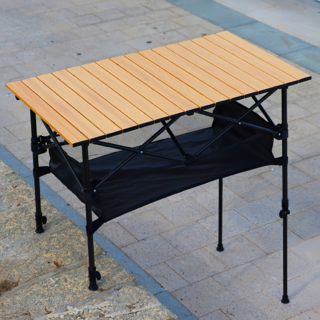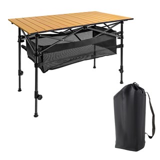미리앤주 조립 간편한 높이조절 접이식 캠핑 롤테이블, 우드