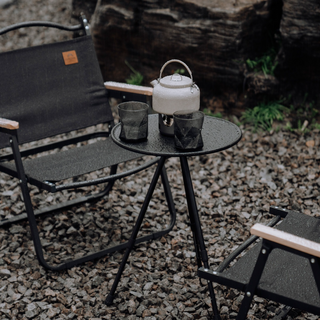 브리즈문 높이조절 캠핑 사이드 메탈 테이블 의자 2p, 모던 블랙