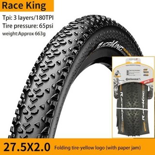 콘티넨탈 레이스킹 180TPI 쉘드월 옐로우 26 x 2.0 / 27.5 x 2.0 MTB용고급타이어, 1개