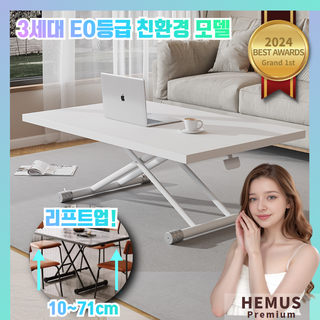 [특가]HEMUS가구 리프트업 테이블 소파 티테이블 거실 강화유리 높이조절 식탁 접이식 좌식 인테리어, HM화이트(120x60cm)