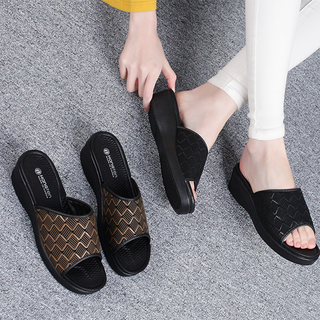 행텐 국산 이중쿠션 통굽 발편한 사무실 슬리퍼 뉴레몬 5cm, 235, 블랙