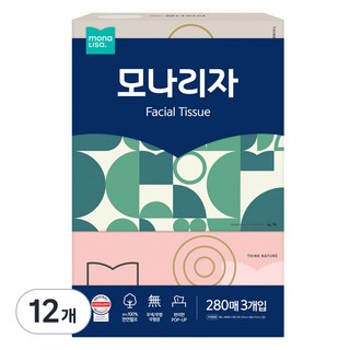 모나리자 천연펄프 미용티슈 2겹, 280매, 12개