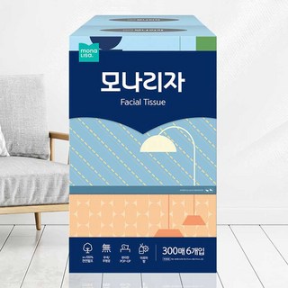 모나리자 천연펄프 미용티슈 2겹, 300매입, 6개