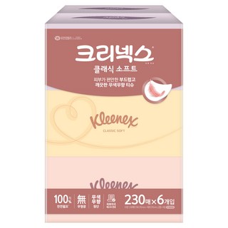 크리넥스 클래식 소프트 천연펄프 미용티슈 2겹, 230매, 6개