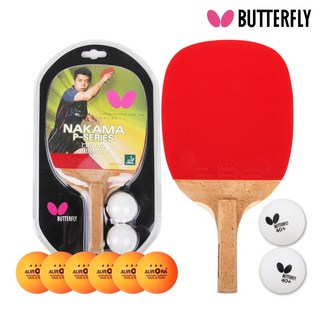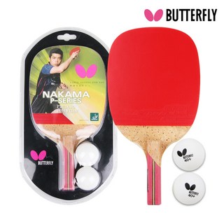 버터플라이 펜홀더 탁구 라켓 NAKAMA P-10 + 탁구공 2p, 1세트
