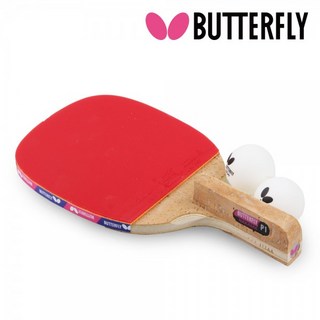 버터플라이 펜홀더 탁구 라켓 BIRIBA 2-1 + 탁구공 2p, BIRIBA2-1, 1세트