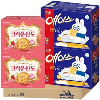 [블루존] 해태 크라운 과자 2종 1038g (에이스364g +크라운 산도 딸기155g ), 1개