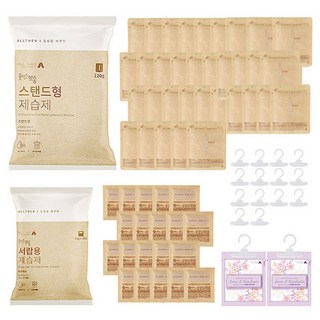 [물먹는뽀송] 제습제 71종 세트(스탠드형 35개+서랍형 20개+에어퍼퓸 2개+옷걸이 14개), 없음