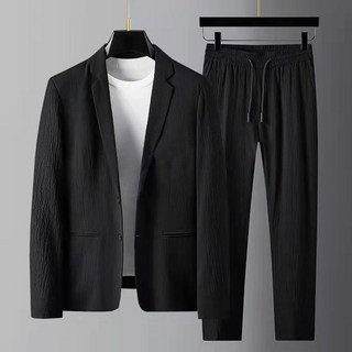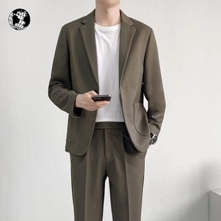 언탭트 남성용 사계절 투버튼 캐주얼 수트 자켓 + 긴바지 세트