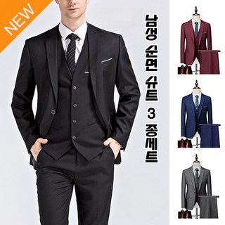 남성정장세트 결혼 정장 세트 슬림 빅 사이즈 솔리드 정장 세트 순면 세트 3종 세트