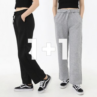 1+1 여성 일자핏 트레이닝 바지 밴딩 캐주얼 외출 편한 와이드 팬츠 슬랙스