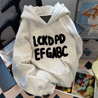 ANYOU 여성 빅사이즈 상의 루즈 레터링 후드 맨투맨
