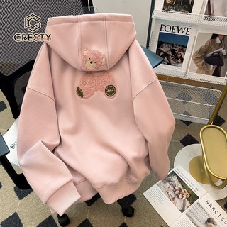 CRESTY 여성용 빅사이즈 기모 후드티 클래식 루즈핏 후드 티셔츠