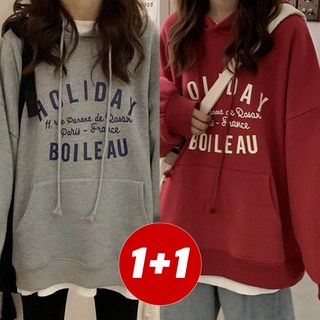 미와이 베이직 무지 오버핏 후드티 1+1