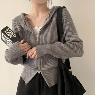 여성 후드 니트 티셔츠 봄가을 이너 니트 슬림소녀 Women's T-shirt