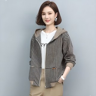YAPOGI 역시즌 여성 후드집업 체크 클래식 아우터 엄마 가을 재킷 루즈핏 점퍼 편한 코트