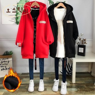 오스틱니[150kg까지 날씬해보이는] 후드집업 여성 가을 겨울 편한 간절기 후드 무지 루즈핏 레터링 자켓 기모 집업 롱 빅사이즈 오버사이즈 겨울옷 가을옷 캐주얼 패션 데일리 상의옷