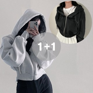 도오빠 뉴베이 여성 크롭 후드 집업 기모 긴팔 후디 지퍼 추리닝 상의 1+1 아우터 2개 세트 프리사이즈 여자후드집업