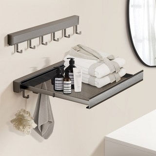 뷔이위이 욕실선반 무타공 다용도 접이식 화장실 선반, 그레이, 1개