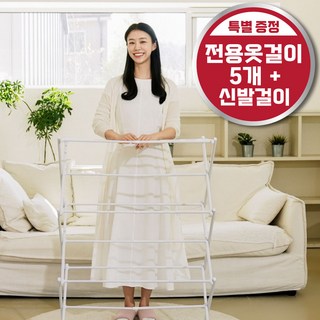 건조대장 3단 공간활용 빨래건조대 튼튼한 접이식 미니 빨래 건조대 + 전용옷걸이 5개 + 신발걸이 1개, 건조대장 빨래건조대 + 전용옷걸이5개 + 신발걸이1개
