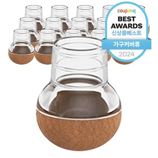 까사재클린 소음 미끄럼 방지 투명 의자 발 커버, 브라운, 16개