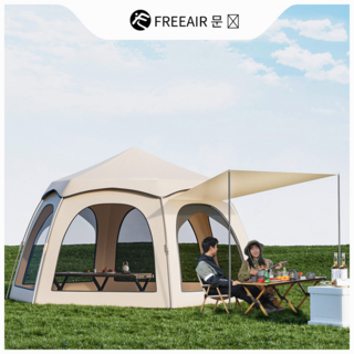 Surkat 원터치 육각 대공간 가족 텐트 대형 육각 돔텐트 자동 캠핑그늘막텐트, 아이보리, 5-8인용