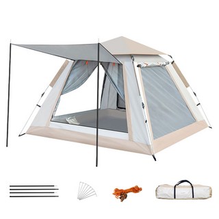 캠핑 텐트+그늘막 2-in-1 캐노피 전자동 자외선차단 타프 풀세트 3-4인 용아웃도어 원터치, 3-4