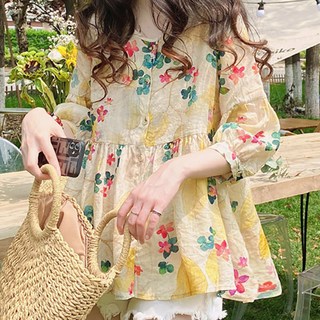 쉬블림로브 여성 시원한 플라워 패턴 반오픈 데일리 꾸안꾸 블라우스 GW1729