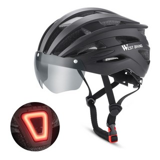 방탄고글 + 후미등 일체형 경량 인몰드 자전거헬멧, 무광블랙, 1개