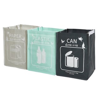 해피세일 헤브 분리수거함3매, 회색 + 하늘색 + 연두색