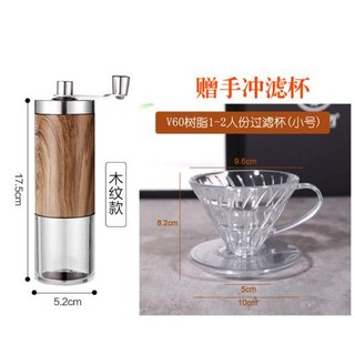 커피 그라인더 손잡이 수동 소형 밀가루 제분기, 우드그레인 빈 밀 소형 V60 레진 필터 컵