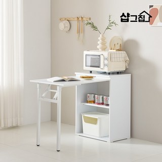 텐더 렌지대 겸 접이식식탁 수납장 렌지대겸용식탁, 화이트