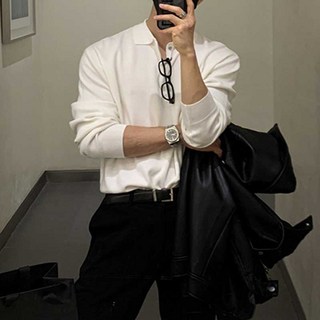 남성 부드러운 카라 긴팔 니트 셔츠 상의 정장