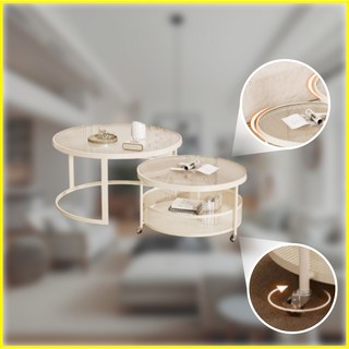 에브렌 좌식 티 쇼파 럭셔리 거실 사이드 커피 미니 테이블, 크림화이트(50+70cm)