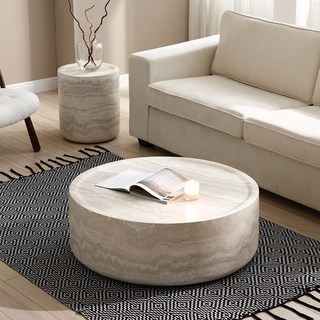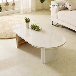 태영스토어 우드 라운드 거실 리빙 선반 테이블, 마블화이트