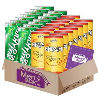 [메리박스] 미니캔음료 선물세트 칠성사이다 15개+밥알없는식혜 15개 +메세지카드, 1세트