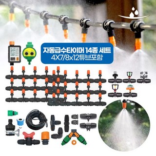 미니스프링쿨러 자동급수타이머 14종 세트 정원 화단 물주기 4x7/8x12 튜브포함, 6) 자동급수(스프레이) 8X12 40PC, 1개