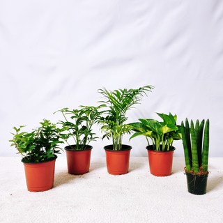 꽃피우는청년 분갈이용 실내공기정화식물 모종 5종 세트 (테이블야자 홍콩야자 나한송 트리안 천냥금), 5개, 테이블야자,홍콩야자,나한송,트리안,천냥금