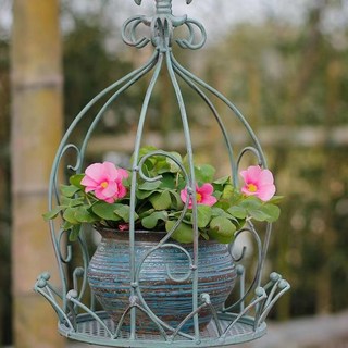 Meainna 철제 크라운 행잉 꽃랙 바구니 인테리어 정원장식 소품, 빈티지 그린, 보여진 바와 같이