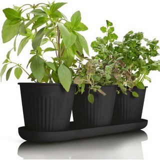 키바가 뷰티풀 허브 가든 화분 실내 세트 3종 - 모든 주방 창문 실이나 조리대에 완벽 모던 데코 가드닝 키트 포함. 집에서 신선한 허브를 재배할 수 있는 트레이 및 배수 구멍, Black