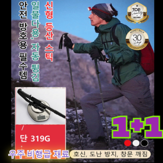 1+1[고품질] 리얼 신형 알루미늄 합금 등산 스틱/ 업그레이드 모델/엄선된 재료, (1+1) 굽은 손잡이 레드*2 [고급판], 2개