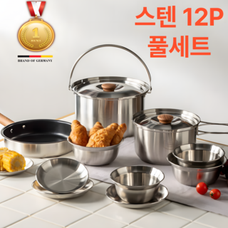 에이치몰 캠핑 코펠 세트 3중 스텐 냄비 식기 후라이팬 3~4인용 12P 풀세트, 1세트