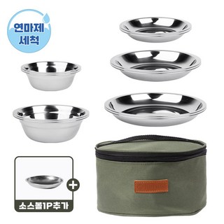 키친아트 캠핑 스텐레스 식기 25P세트, 7종 (그릇 2종, 접시4종, 전용가방), 25개