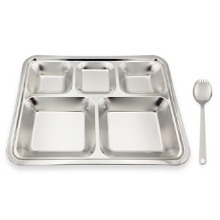 [바른식판]국산 스텐 27종 사각군용식판+군용수저 세트 군납전용 대형식판, 1세트