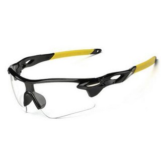 엘마운틴 자외선차단 방탄렌즈 스포츠 선글라스+케이스 자전거 등산 낚시 남자 남성 고글 썬글라스 미러 선그라스, 블랙옐로 프레임 / 투명 렌즈, 1개