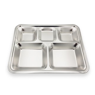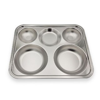 군대 군용 군인 스텐 사각 식판 5구 3찬 배식판 국산 다이어트 가정용 초등학생 성인용 스텐레스 스테인레스 스테인리스 교회 학교 단체 급식판, 1개
