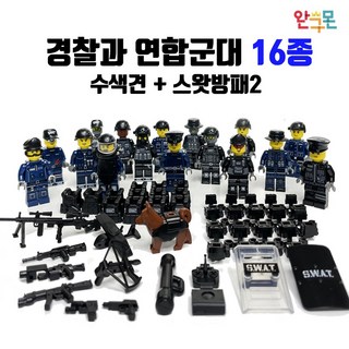 완구몬 경찰레고 SWAT 특공대 12종 세트 군인 밀리터리 피규어 중국 레고 호환 블럭, SWAT 경찰 연합 군대 + 수색견 + 스왓방패2, 1개