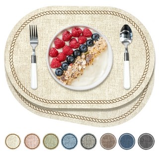 에비에르 로프 가죽 식탁매트 테이블매트 2p, 오트밀 2장, 44 x 30 cm, 2개