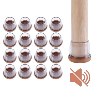 까사재클린 소음 미끄럼 방지 투명 의자 발 커버, 브라운, 16개